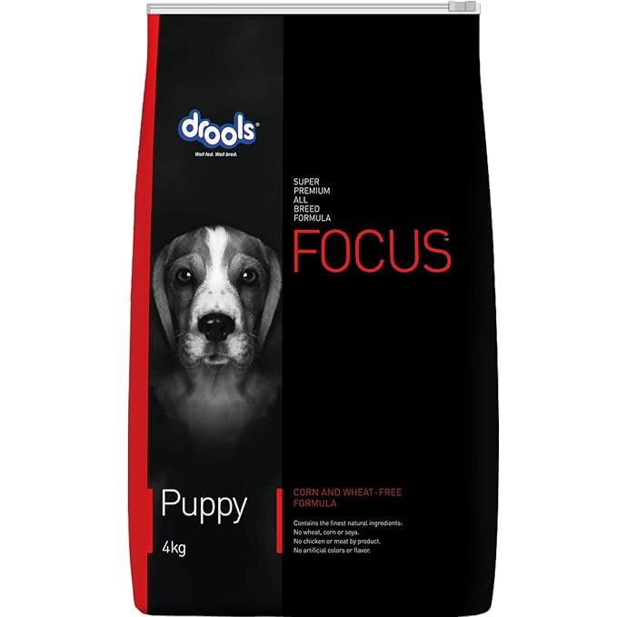Drools Focus Puppy Super Premium Dry Dog Food 4kg Pack | Chicken Flavour | Growth & Intelligence | Digestive Health | Healthy Skin & Coat