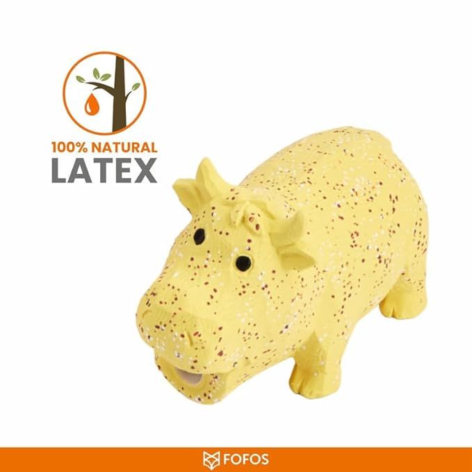 FOFOS Latex Ox Squeaky Dog Toy - 100% Natural Rubber & Squeaky Toys for Dogs, Lightweight Dog Toys for Medium Dogs (0-20kgs) - Yellow