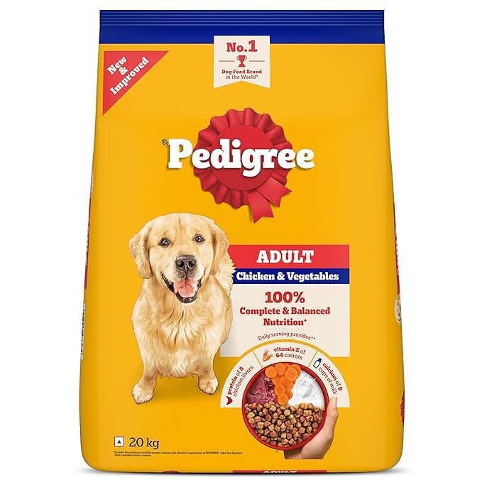 Pedigree Adult Dry Dog Food, Chicken & Vegetables, 20 kg, Contains 37 Essential Nutrients, 100% Complete & Balanced Food for Adult Dogs